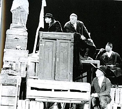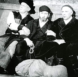 Марина Тимашева: Когда эта четверка спутников выстраивается на авансцене по росту, все - в темных пальто и сношенной грубой обуви, когда они закладывают за согбенные спины одну, и потом вторую руку, когда они, дождавшись первых тактов музыки, начинают медленно и степенно переваливаться с ноги на ногу, намекая на ход еврейского танца, но совершенно его не акцентируя, люди в зале рыдают в голос. И ждут этого прохода-рефрена, как минуты свидания с настоящим театром. Позволю себе привести фрагменты обсуждения спектакля театральными критиками разных поколений. Это Наталия Каминская из газеты "Культура", Анастасия Арефьева и Влада Куприна из Российской Академии Театрального Искусства и их профессор Алексей Бартошевич. Голос: Вот эта троица артистов меня просто потрясла. Такой сочностью, такой искренностью существования, таким умением рассказать анекдот, но не впасть в него. Видимо, что-то происходит в театральном сознании. Общий процесс - потребность рассказать человеческую историю. С этой точки зрения, одна из финальных фраз пьесы: "Господи, сделай всех евреями" воспринимается, как "Господи, сделай всех людьми". Анастасия Арефьева: Политические события и исторические, они все связаны, они становятся частью человеческой судьбы, перетекают одно в другое. Дом-ковчег - дом-повозка, и земля обетованная, которую они ищут, к которой они идут, она здесь, она есть уже. Идти далеко, в этом смысле, не надо. По атмосфере, по уважению к культуре, настолько это было удивительное единение, что, действительно, национальный вопрос, он есть, он, конечно, заявлен практически во всем, но он оказывается вторичен. Фраза одного из героев: "Мне все народы нравятся, но лучше быть ольхой" - она обо всем говорит. Влада Куприна: Вот этот дырявый мир, который со всех сторон должен продуваться ветрами, он наполнен таким человеческим теплом, человеческой радостью и приятием жизни, при тех страшных вещах, которые там происходят. Это спектакль про человеческий стоицизм, показанный необычно, с такого странного и неожиданного ракурса. Алексей Бартошевич: