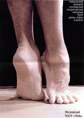 В это трудно поверить, но ноги играют роль. Они пишут на песке имя возлюбленной и затем стирают его, они ждут, застенчиво трепеща, когда Галатея случайно коснется их. А потом появляются и руки, огромная ладонь пробует задержать дразнящую его куколку и заживо замуровывает войско своего соперника. И дальше - не спрашивайте меня, как Цискаридзе это удается - его тело втискивается в коробочку-сцену, пробуя рассмотреть кораблик Одиссея. В этот момент на носу кораблика возникнет фигурка воина и копьем проткнет единственный глаз Полифема. Жанр "трагический балет" обусловлен тем, что произойдет дальше. Ноги великана, прежде столь самоуверенные, начинают двигаться совершенно беспомощно, на ощупь. Все тот же масштаб усиливает трагизм: такое большое оказывается таким беззащитным и гибнет. Правда, Илья Эппельбаум снижает трагический пафос: те же ступни, но уже облаченные в белые балетные тапочки, разучивают с куколками-ангелочками па классического балета.
